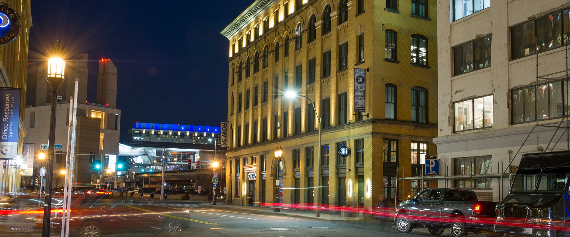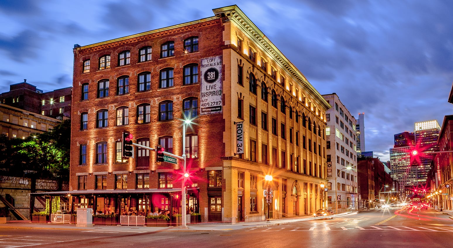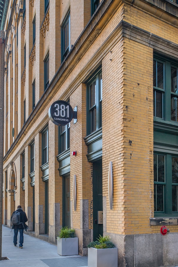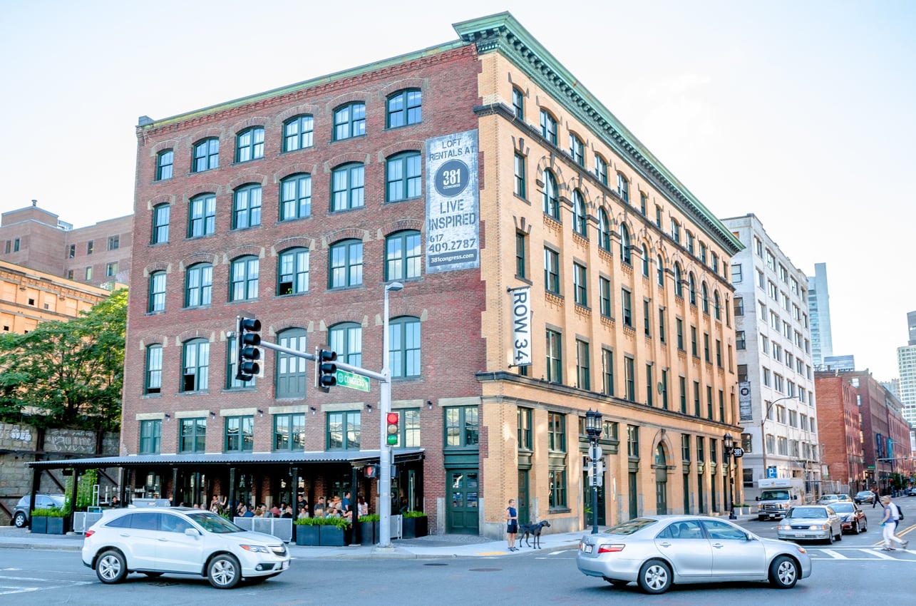 The Lofts at 381 Congress consist of the adaptive reuse of a former steel distribution building into 44 loft-style apartments in the heart of the Fort Point Channel District. Each unit boasts contemporary finishes and historical architectural details including exposed brick and wooden beams with ten- to twelve-foot ceilings. Additionally, a roof deck offers expansive views of the city skyline, while the ground level features the wildly popular Row 34 Restaurant and Bar.